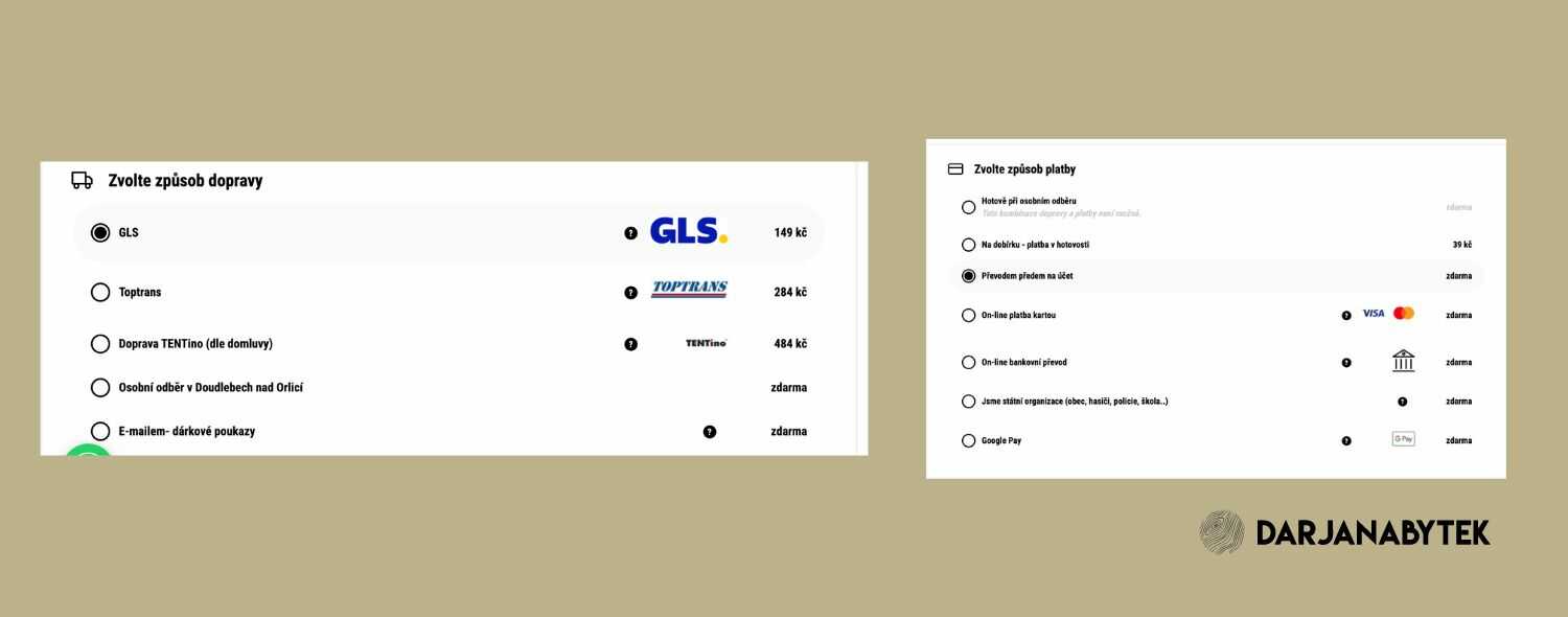 Za objednávku na e-shopu můžete zaplatit na dobírku v hotovosti, platební kartou online, bankovním převodem i přes Google Pay a Apple Pay. Dopravu můžete zvolit buď přímo obchodem, nebo TopTrans, případně si zboží osobně vyzvednout v centrálním skladě v Doudlebech nad Orlicí. Osobně odběr je zdarma, stejně jako doprava na objednávky přesahující svou hodnotou 40 000 Kč.